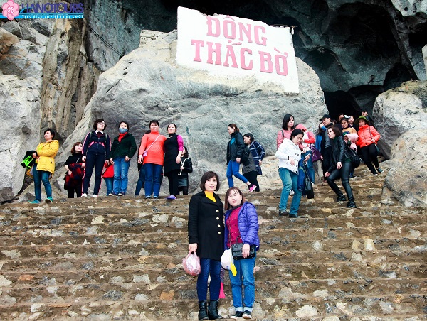 Du thuyền di chuyển tới Vịnh Ngòi Hoa tại đây, du khách sẽ có cơ hội chiêm ngưỡng vẻ đẹp ngoạn mục của lòng hồ Hòa Bình – nơi được mệnh danh là “Vịnh Hạ Long trên núi”. Quý khách tham quan động Thác Bờ, Chiêm ngưỡng hình nhũ đá tự nhiên tạo nên vẻ đẹp tự nhiên linh thiêng và huyền bí. Động gắn với quần thể di tích đền Bờ thờ Bà Chúa thượng ngàn có công giúp vua Lê Lợi dẹp loạn phương Bắc, đây cũng từng là nơi trú chân của nhiều cánh lái buôn ngược xuôi sông Đà khi qua đây gặp sóng to gió lớn. Do đó, động Thác Bờ từ lâu đã thu hút du khách thập phương đến bái vọng và du lịch. Trở lại Du thuyền, tiếp tục hành trình tham quan Đền Bà Chúa Thác Bờ một điểm thăm quan thắng cảnh nổi tiếng của Hoà Bình với đền Thác Bờ - thờ Thánh Mẫu nổi tiếng linh thiêng mà khách thập phương vẫn tìm về cầu Phúc – Tài - Lộc.