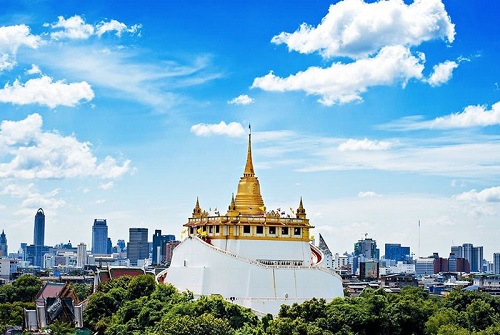 + Chùa Wat Saket (Chùa Núi Vàng) - kỳ quan của thủ đô Bangkok. Được xây trên một ngọn đồi nhân tạo, Wat Saket là một trong những điểm thu hút du khách bậc nhất Bangkok. Để lên đến đỉnh cần leo lên 300 bậc thềm vòng quanh như con rắn uốn lượn.