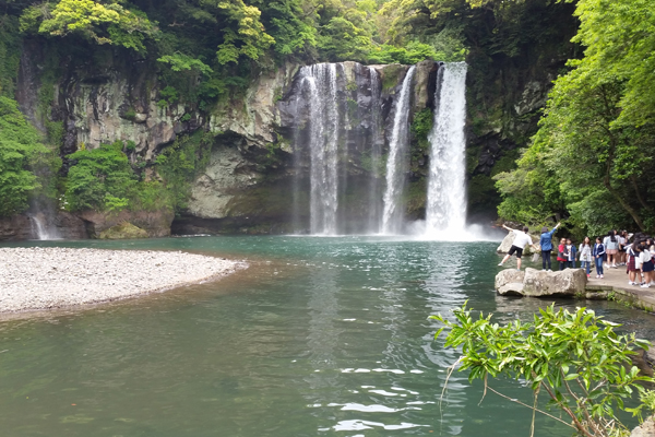 12. Tắm thác Cheonjiyeon: Với chiều cao thác 22m, sâu từ 12-20m, dòng thác Cheonjiyeon tạo nên một cảnh tượng tuyệt vời bên một vách đá dốc đứng. Tiếng thác đổ ầm ầm, hầu như lấn át tất cả các âm thanh xung quanh. Hàng năm tại đây tổ chức lễ hội 7 nàng tiên, theo truyền thuyết có 7 nàng tiên phục vụ Ngọc Hoàng đã bước xuống thác từ những đám mây ngũ sắc và tắm trong làn nước trong xanh ở đây, chính vì vậy Cheonjiyeon còn được biết đến với cái tên "Hồ Chúa Trời".