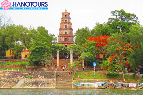 09h30: Tàu đến Ga Huế, Xe và Hướng dẫn viên Công ty Du lịch Hà Nội (Hanotours) đón Quý khách tại Ga Huế, đưa đoàn đi tham quan, khám phá nhà vườn An Hiên và chùa Thiên Mụ: