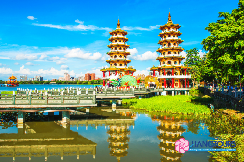 - Hồ Sen với Xuân Thu Các - Tháp Long Hổ: Một thắng cảnh trên hồ tuyệt đẹp, nơi Quý khách có thể phóng tầm mắt ra xa ngắm cảnh Cao Hùng và hít thở không khí trong lành mát mẻ với mùi thơm của hoa sen nở trong hồ vào mùa sen nở.