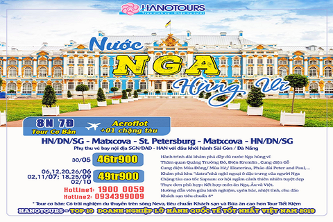 Khởi hành: 30/5; 06, 12, 20, 26/06; 02, 11/07; 18, 25/09; 02/10/2020