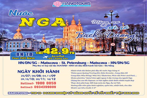 Khởi hành: 15, 20, 22, 29/5; 03, 10, 12, 17, 24, 26, 29/6; 06, 08, 10, 17, 20, 22, 24, 31/7; 07, 26/8...
