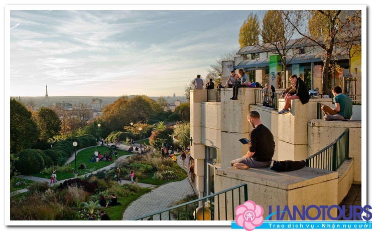 Công viên Parc De Belleville, nơi cũng được nhiều du khách lựa chọn với cảnh quan tuyệt vời của cảnh sắc thiên nhiên. Đặc biệt là vào hoàng hôn tới, nó hiện lên vẻ đẹp của ánh nắng hoàng hôn và toàn bộ thủ đô Paris dường như nằm gọn trong mắt bạn.. Công viên Parc De Belleville hứa hẹn mang lại nhiều điều thú vị cho hành trình du lịch Châu Âu 7 ngày 6 đêm của bạn