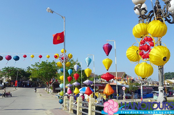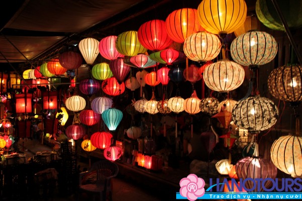Màn đêm buông xuống, chẳng cần những ánh đèn rực rỡ như Hà Nội hay Sài Gòn, Hội An nhẹ nhàng mà bừng sáng dưới trăm ngàn màu sắc của đèn lồng. Những chiếc đèn rực rỡ lung linh soi đường cho mọi du khách. Trong phố cổ, dòng người đi lại thanh bình, vừa tận hưởng từng gió lùa vào mái tóc, vừa thưởng thức cái sự lung linh của đủ loại ánh đèn. Đèn lồng đã làm lên cái hồn của phố cổ Hội An.