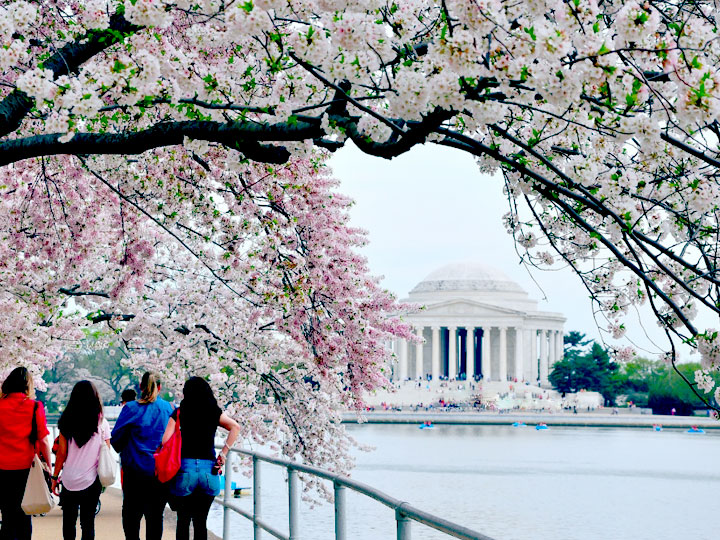 Đến Washington DC. Xe đưa đoàn đi ngắm sắc hoa Anh đào đẹp lộng lẫy tại thủ đô WDC. Cứ vào cuối tháng 3 hàng năm, mùa hoa anh đào ở Mỹ đã bắt đầu nở rộ. Vào thời điểm này, khi du lịch đến Washington Dc bạn sẽ được tham gia lễ hội hoa anh đào vô cùng đặc sắc. Lễ hội này được tổ chức thu hút hàng triệu du khách trên toàn thế giới. Trong mùa lễ hội, người dân thủ đô Washington lại đổ về hai bên hồ Tidal Basin để ngắm hoa nở và chụp ảnh.