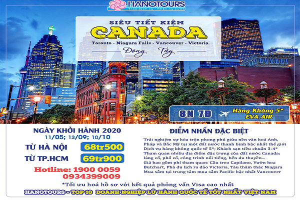 - Hành trình và thứ tự ngày tham quan, điểm tham quan có thể thay đổi tại thời điểm thực hiện cho phù hợp với điều kiện giao thông thực tế hoặc thời gian xếp hàng tại các điểm tham quan của Canada hoặc địa danh tham quan….
