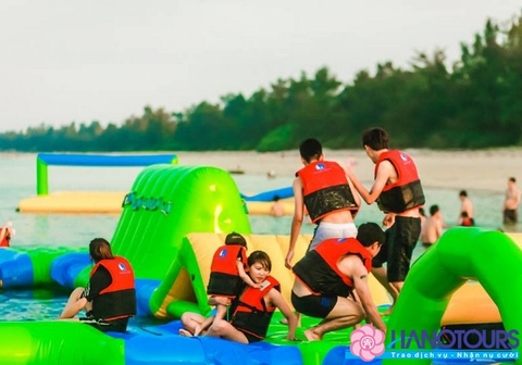 Khu vui chơi này tổ hợp bao gồm nhiều hạng mục công trình vui chơi hấp dẫn đa dạng như tổ hợp trò chơi bơm hơi, leo núi trên biển, vượt chướng ngại vật, khu vui chơi cát dành cho trẻ em, chèo thuyền kayak, bóng chuyền nước và cưỡi phao chuối…