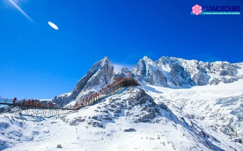 - Khu lịch Núi Tuyết Ngọc Long: Quý khách đi cáp treo nhỏ lên Vân Tam Bình độ cao 3200m ngắm cảnh đẹp Núi tuyết Ngọc Long - Ngọn núi cao 5596m tuyết phủ quanh năm. Phần băng vĩnh cửu ánh lên một màu xanh như ngọc.