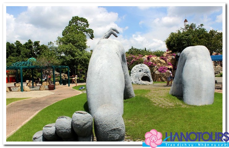 Bạn sẽ dễ thấy một bàn chân người khổng lồ chôn dưới đất, bên cạnh nó là khu vườn tình yêu dành riêng cho bố và mẹ khi tới thăm. Một số khu có đầy đủ trang phục cho con bạn hóa thân thành siêu nhân hay ma cà rồng, thiên thần tuyết trắng…