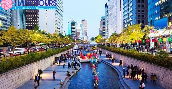 - Chụp ảnh tại quảng trường Gwanghwamun và suối nhân tạo Cheng-gye trong lòng thành phố.