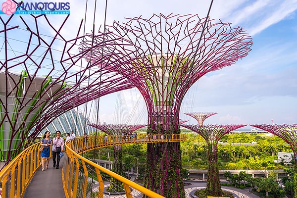 - Vườn thực vật Garden by the Bay - Khu vườn cây nhân tạo với hệ thống siêu cây có khả năng tổng hợp năng lượng mặt trời và lọc sạch không khí. Thăm quan hai khu nhà vườn trong nhà kính mái vòm (Flower Dome & Cloud Forest)để tìm hiểu về hàng nghìn loại cây lạ trên thế giới và đặc biệt tận mắt chứng kiến các loại nước thải và rác thải của hai nhà kính này được tái sử dụng để trở thành năng lượng quay tua bin hơi nước nhằm cung cấp điện cho khu vườn (chi phí tự túc).