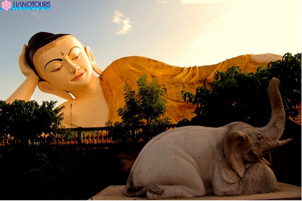 - Thăm chùa Phật nằm - Kyauktatgyi - ngôi chùa có bề dày lịch sử hàng trăm năm, uy nghi hoàng tráng ngay giữa trung tâm thành phố Yangon yên bình. đoàn tự do mua sắm tại Chợ Bogyoke Aung San (Chợ đóng cửa vào ngày nghỉ lễ và thứ 2) - đây là ngôi chợ nổi tiếng nhất Yangon, đã có trên 70 năm tuổi, với hơn 2000 quầy hàng bán từ con rối nổi tiếng của Mandalay, đến những viên đá quý lấp lánh. Hoặc di chuyển ra hồ Kandawgyi, nơi quý khách có thể ngắm toàn cảnh chùa vàng và khu vực trung tâm thành phố Rangon từ khinh khí cầu ở độ cao 100m ( Chi phí tự túc). Ăn trưa.