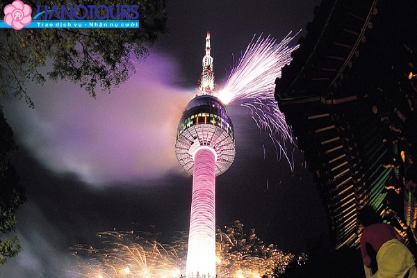 - Tháp truyền hình Namsan N Tower - một biểu tượng và là nơi cao nhất thành phố Seoul. Nơi có những móc khóa tình yêu được gắn lên bởi hàng triệu cặp đôi đến từ khắp nơi trên Thế Giới. Bạn có thể lên đỉnh tháp để ngắm toàn cảnh Seoul (chi phí tự túc).