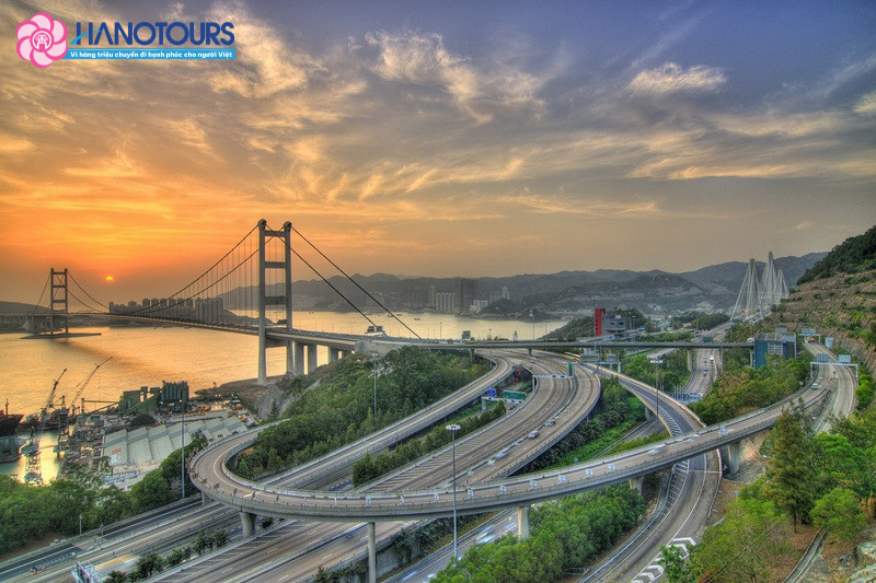 Đến nơi, xe đón đoàn về trung tâm thành phố, trên đường ngắm cầu treo Thanh Mã (Tsing Ma Bridge) – niềm tự hào của Hong Kong, cây cầu treo lớn nhất châu Á và đứng thứ 7 thế giới.