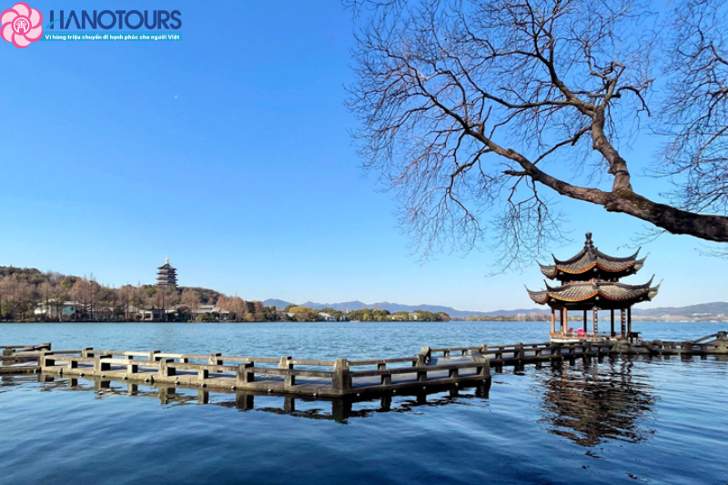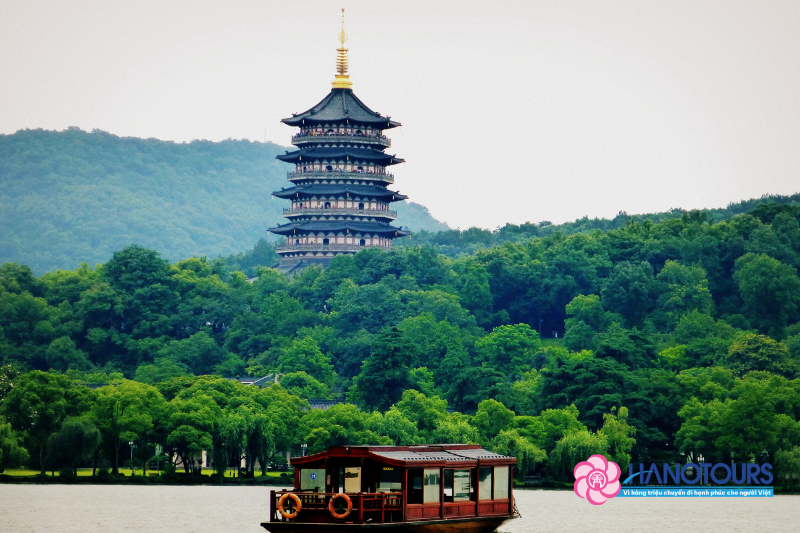 - Quý khách ngồi thuyền thưởng ngoạn Tây Hồ - được xem là đẹp và nên thơ nhất trong hơn 36 hồ có cùng tên ở Trung Quốc, nhìn ngắm Quả sơn, Đoạn kiều, Trường kiều, Tô Đê Bạch Đê, Tam Đàn Ấn Nguyệt và Hoa Cảng Quan Ngư (thăm bên ngoài) gắn liền với những truyền thuyết về Lương Sơn Bá - Chúc Anh Đài, nhà thơ Lý Bạch, Thanh xà - Bạch xà.