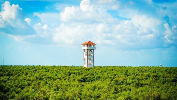 Đứng trên đỉnh tháp canh, xung quanh chỉ một màu xanh lá tràm. Thân cây thẳng, cao vút, nhiều dây leo quấn, ánh mặt trời xuyên qua tán cây, đổ bóng xuống mặt đường, tạo nên cảnh tượng vô cùng hấp dẫn.