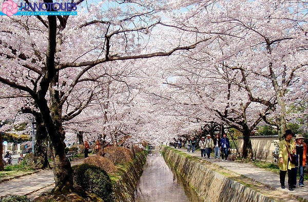 Đoàn di chuyển tới khu vực gần sông Yamazaki để ngắm nhìn hàng trăm cây hoa anh đào khoe sắc rợp khắp một góc trời. Du khách đi dạo trên con đường Shiki no Michi – Con đường bốn mùa dọc bờ sông Yamazaki sẽ được chiêm ngưỡng khung cảnh những cánh hoa bay trong gió, dập dềnh trên mặt con sông nhỏ, dệt nên một tấm thảm hoa đẹp tuyệt vời vừa lãng mạn tinh khôi nhưng không kém phần lộng lẫy.