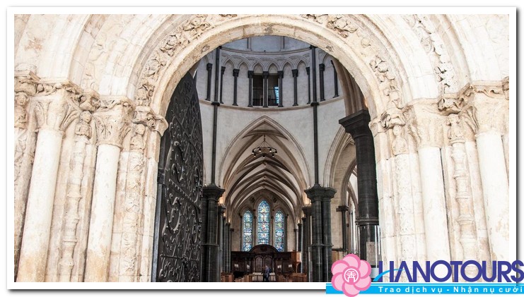 Khi tiến vào bên trong, và ngước lên mái vòm bạn sẽ thấy kiến trúc pháo đài kiểu Gothic. Quan sát xung quanh là hình tượng hiệp sĩ dòng đền William Marshal của Pembroke với thanh gươm đá.