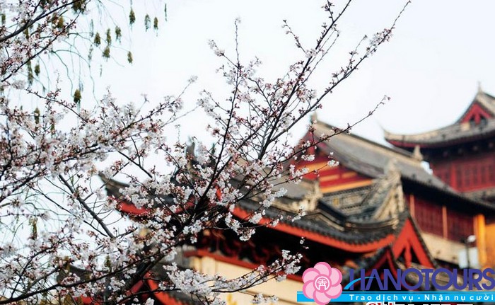 Hoa anh đào thường nở nhiều nhất vào tháng 3, tại các ngôi đền ở Nam Kinh, thủ phủ Giang Tô phía đông Trung Quốc. Bạn sẽ thấy rất nhiều ngôi đền cổ kính có hoa anh đào nở lên. Ngôi đền Jiming còn có tên gọi khác là : “ tiếng gáy của gà trống ”. Ngôi đền mang trong mình nét đạo phật và được mệnh danh là ngôi đền cổ kính nhất ở Nam Kinh.