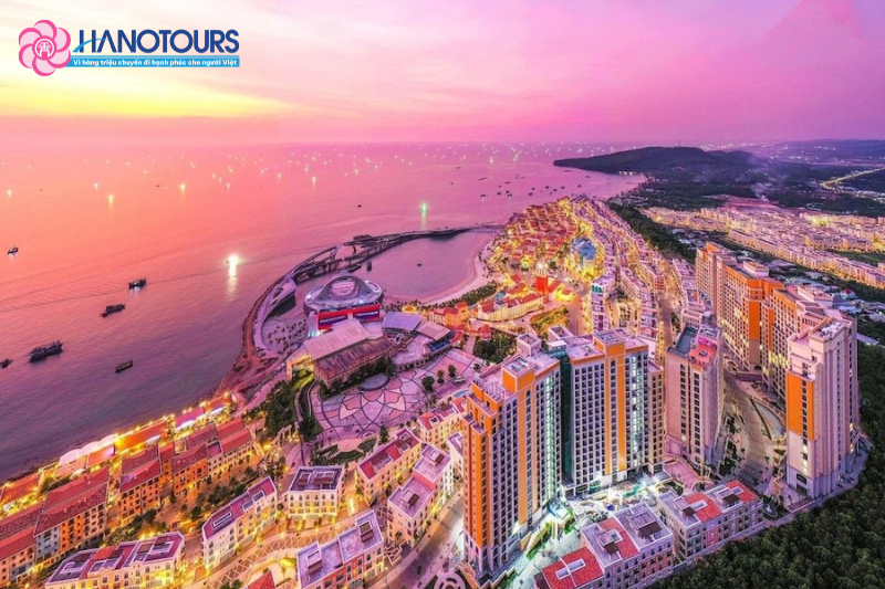 - Check-in Địa Trung Hải Phú Quốc, Đấu Trường La Mã, Cầu Hôn Kiss Brridge tại thị trấn Hoàng hôn. Đây là điểm check in mới được thiết kế với nguồn cảm hứng từ chuyện tình Ngưu Lang Chức Nữ kết hợp văn hóa Việt Nam và Italia ngay tại đảo Ngọc Phú Quốc. (Chi phí vé tham quan tự túc)