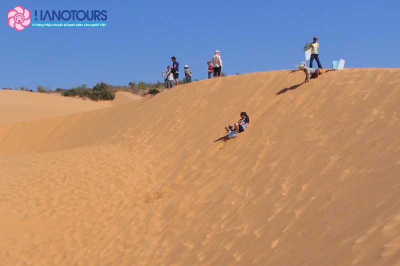 - Đồi Cát Hồng (Đồi Cát Bay) – chiêm ngưỡng vẻ đẹp độc đáo của những triền cát vàng dưới ánh bình minh (có thể thuê máng trượt hoặc thưởng thức đặc sản địa phương – chi phí tự túc)