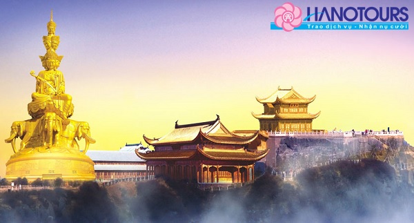 - Quý khách thăm viếng chùa vàng, chùa bạc, chùa đồng, tượng Thập Phương Phổ Hiền: Tọa lạc ở đỉnh núi Nga Mi trên cao 3.079m, tượng Phật bốn mặt cao 48m (cao nhất thế giới) bằng đồng với 20kg vàng mạ bên ngoài. Tượng Phật uy nghi mặt quay về 4 hướng, ngồi tự tại trên đài sen, cưỡi trên 4 con voi lớn. Màu xanh biếc của bầu trời làm nổi bật tượng Phổ Hiền. Sau khi tham quan, Quý khách xuống núi bằng xe của khu du lịch và cáp treo.