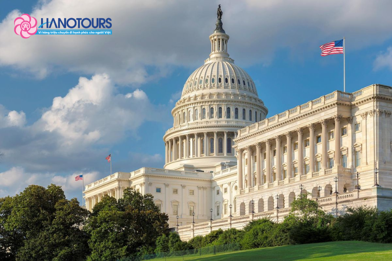 - Nhà Trắng (chụp ảnh bên ngoài) - Nơi làm việc của đương kim tổng thống Hoa Kỳ, nơi đón tiếp các nguyên thủ quốc gia.