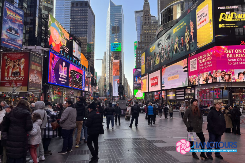 - Quảng trường thời đại (Times Square) - Quảng trường trung tâm thành phố New York rực rỡ với những ánh đèn màu và bảng quảng cáo. Đây là nơi thị trưởng thành phố phát biểu trước công chúng và tổ chức những sự kiện lớn của New York.