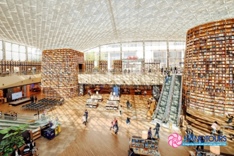 - Thư viện Starfield: Tọa lạc ngay giữa trung tâm thương mại COEX Mall, đây là thư viện khổng lồ dưới lòng đất với kiến trúc kệ sách cao vút, điểm đến check-in không thể bỏ lỡ của giới trẻ.