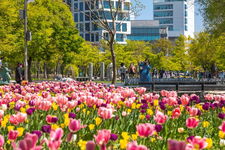 - Quý khách tham quan Công viên SEOUL FOREST - Khung cảnh tại Seoul Forest rất đẹp và đa dạng. Với diện tích rộng lớn hơn 1 triệu mét vuông, công viên này có nhiều khu vực khác nhau, từ nơi bao quanh là cây cối, sông nước, đến các khu vui chơi giải trí. Cảnh quan cây xanh rợp bóng và các loài hoa rực rỡ xung quanh nơi này làm tăng thêm sự mát mẻ và trong lành.Ngoài ra, công viên Seoul Forest được tạo nên bởi sự pha trộn của yếu tố tự nhiên và kiến trúc hiện đại. Những con đường đi bộ, cây cầu nối các khu vực, hồ nước, khu vườn hoa đầy màu sắc cùng với các công trình kiến trúc như nhà hát ngoài trời, trung tâm khách tham quan,… tạo thành một không gian sống động, tươi mới và thu hút khách du lịch tìm đến mỗi năm.