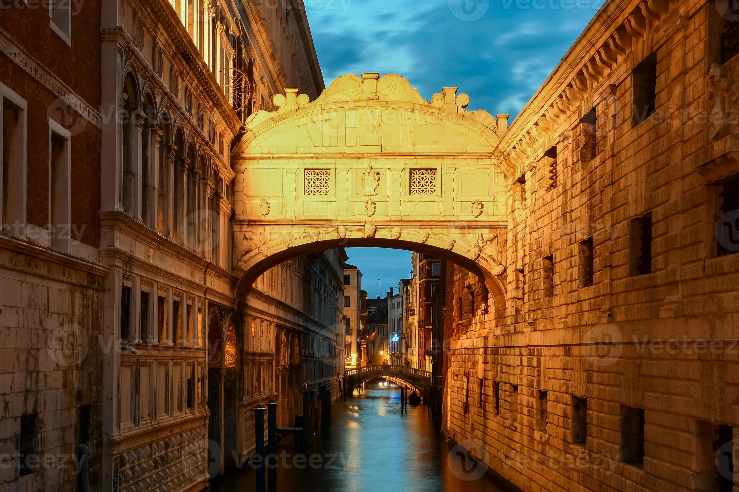 - Cầu Bridge of Sighs – Cây cầu đặc biệt được dựng lên bằng đá vôi, với một lối đi và cửa sổ nối liền hai tòa ngục nhằm vận chuyển tù nhân tới Dinh tổng trấn Doge.