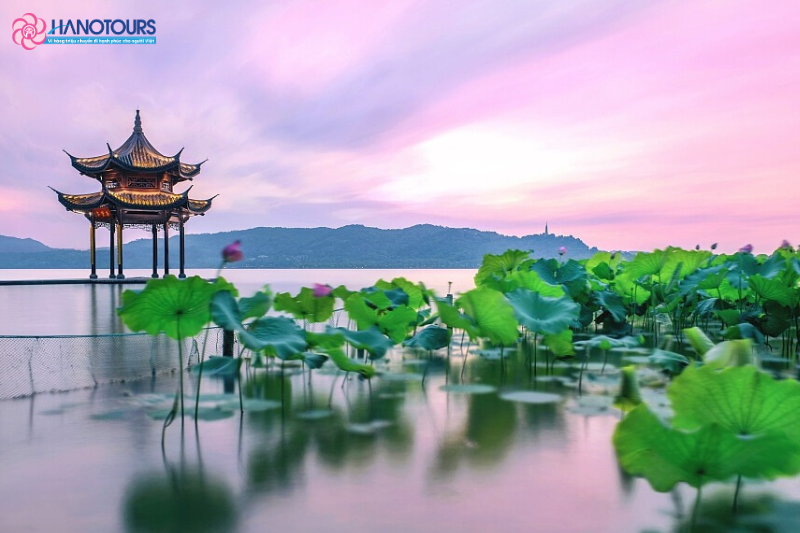- Đoàn ngồi thuyền thưởng ngoạn Tây Hồ - được xem là đẹp và nên thơ nhất trong hơn 36 hồ có cùng tên ở Trung Quốc, nhìn ngắm Quả sơn, Đoạn kiều, Trường kiều, Tô Đê Bạch Đê, Tam Đàn Ấn Nguyệt và Hoa Cảng Quan Ngư (bên ngoài) gắn liền với những truyền thuyết về Lương Sơn Bá - Chúc Anh Đài, nhà thơ Lý Bạch, Thanh xà - Bạch xà
