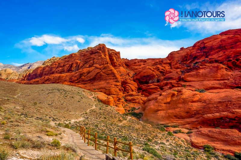 - Hẻm núi đá đỏ - Red rock canyon - Đây là nơi lưu giữ dấu tích sinh sống của các bộ lạc da đỏ và các loại động vật đặc biệt trên sa mạc như đại bàng American Eagle, rùa sa mạc, thỏ sa mạc … Đây còn là nơi có nhiều vách đá sa thạch màu đỏ rực rỡ trải dài hàng cây số, và là phim trường tự nhiên của nhiều bộ phim nổi tiếng.