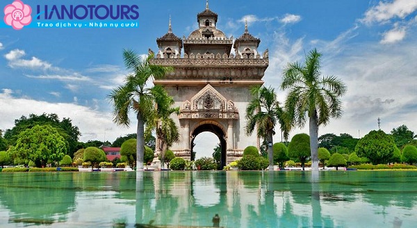 - Đoàn thăm quan Khải Hoàn Môn Patuxay, được xây dựng từ năm 1958, với lối kiến trúc bên ngoài được mô phỏng Khải hoàn môn của Paris.
