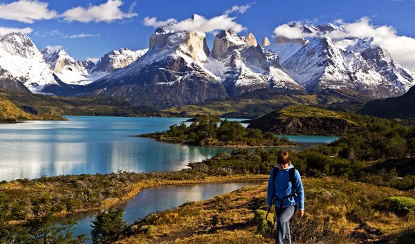 Nằm giữa Chile và Argentina, Patagonia được thiên nhiên ban tặng cảnh quan đẹp tuyệt vời, hồ nước trong vắt nằm cạnh những ngọn núi phủ tuyết trắng. Vườn quốc gia Torres del Paine được chỉ định là vùng dự trữ sinh quyển của Unesco